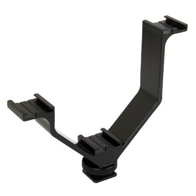 1) The triple shoe V-bracket mounts an a camera is accessory shoe to provide spaced mounting points for lights, monitors, microphones, or other accessories.
