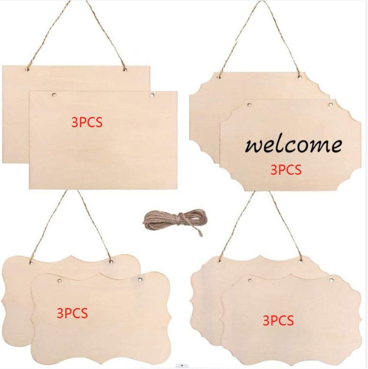 1. 12-piece DIY wooden decoration set, allowing you to create personalized tags, festival ornaments, or home decorations freely. It includes 4 shapes (3 pieces each) and 12 jute ropes for easy hanging.