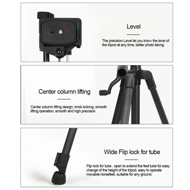 1. Aluminum alloy tripod stand, light and compact, sturdy and durable.