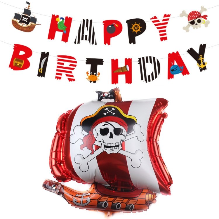 5PCS Pirate Ship Balloon Cartoon Halloween Aluminum Film Balloon