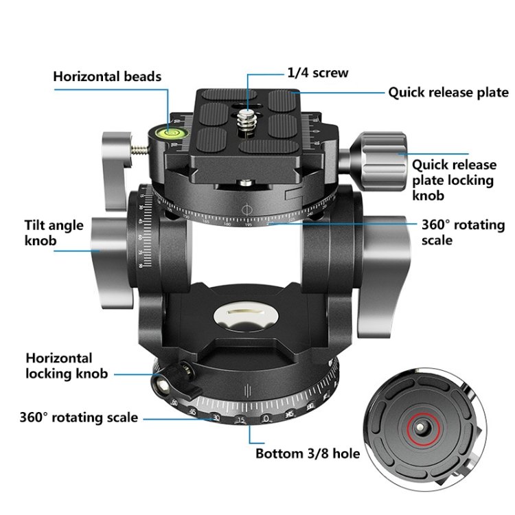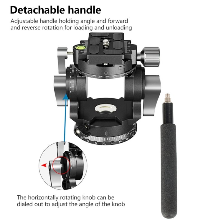1. The entire tripod fluid head boasts an all-metal design, with a textured feel and is more durable.