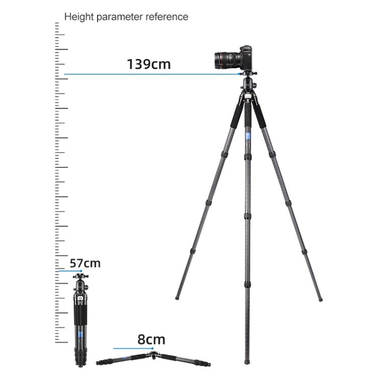 1. Tripod tube is made of high-density carbon fiber, which greatly reduces the weight of the product.