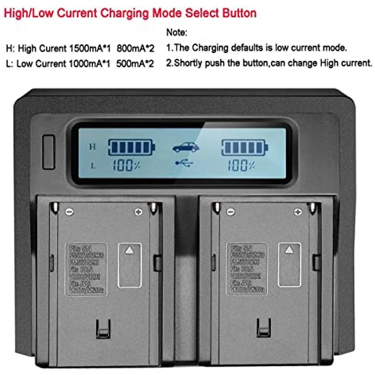Dual Channel LCD Display Digital Battery Charger with USB Port for Sony BP-U30 / U60 / U90 Battery, Compatible with Sony EX260 / EX280 / FS7