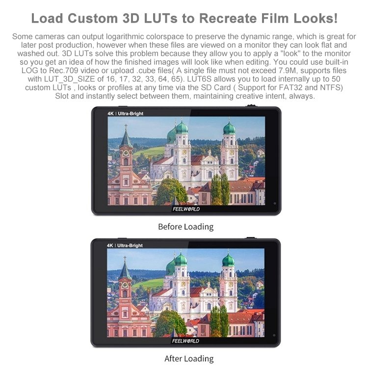 4. Built-in HLG 2020, HLG 709, HLG P3 HDR LUT table, as well as the camera log to standard Rec709 LUT table, support SLOG2, SLOG3, LOGC, VLOG log conversion. LUT6S adds the 3G-SDI signal LUT loop-out function, which can output custom LUT images and display HDR (high dynamic range) signals, providing incredible clarity and detail. Through precise control in the early stage, the post-production process Significantly simplify and increase efficiency