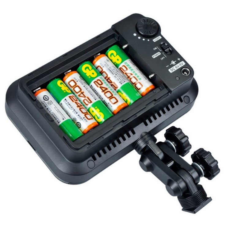 6. Batteries: 8 AA batteries/lithium batteries or DC power supply (not included), lithium batteries: S NP-F970 model camera or camcorder Li-ion battery