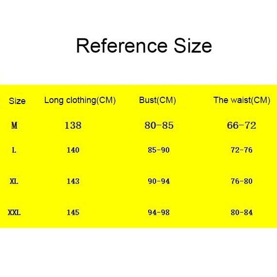 1: Size:XL, Bust: 90-94m, Waistline:76-80cm, Clothes Long:143cm,Stretchable