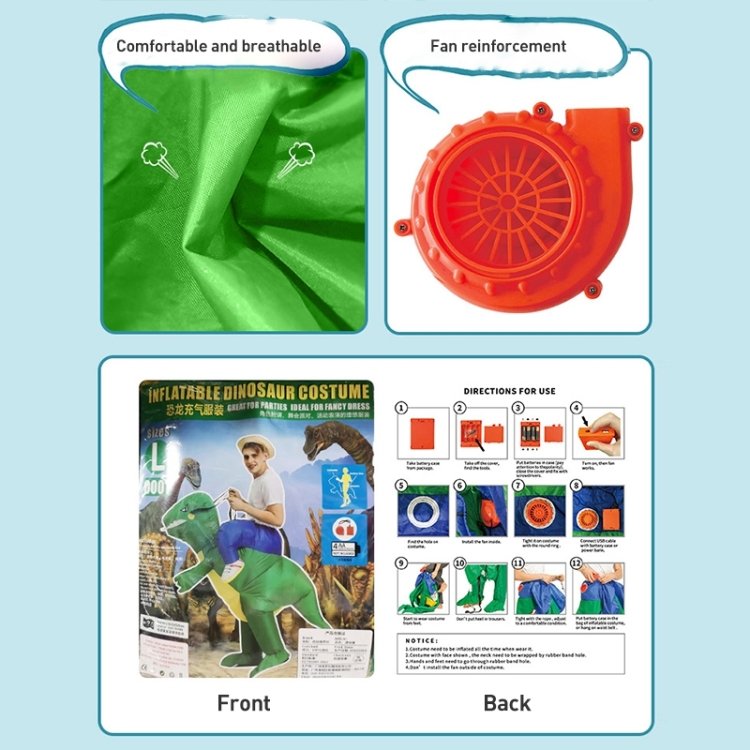 1. It is easy to inflate and put on: simply step into the costume, turn on the fan (discreetly hidden inside the outfit) and you will be fully inflated within 60 seconds.