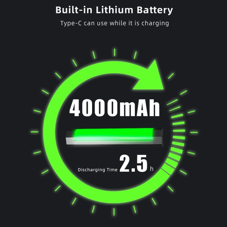 3. Built-in high capacity 4000mAh lithium-ion battery, running long time after a full charged, can work while charging via USB.