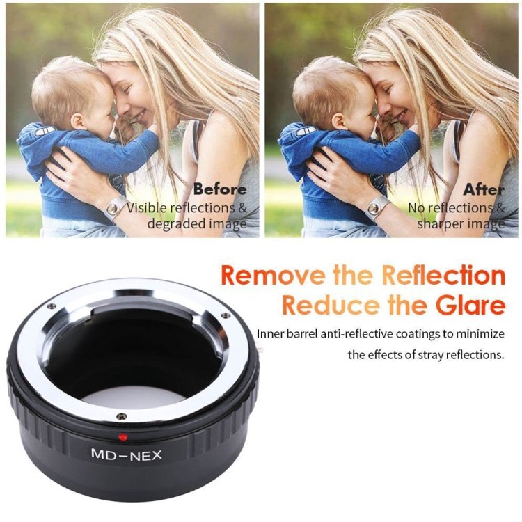 1) You can use the MD lens to Nex mount cameras with this stepping ring