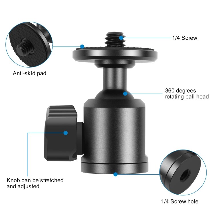 1. This professional mini ball head is the good accessory to add versatility to any tripod.
