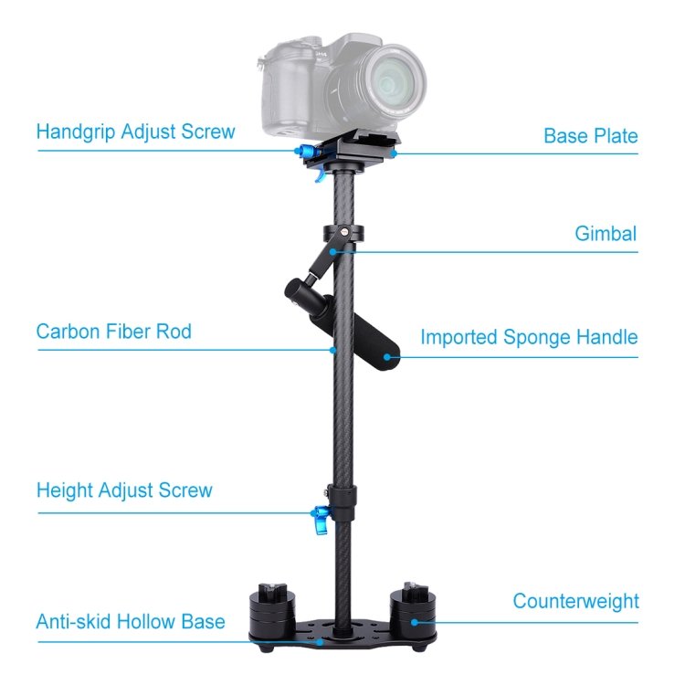 5. Adjustable length, convenient to carry and use; Suitable for the camera between 0.5 – 3kg.