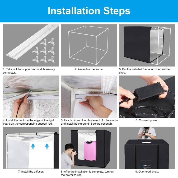 Be the first to review “PULUZ 80cm Folding Portable 72W White Light Photo Lighting Studio Shooting Tent Box Kit with 3 Colors Black / White / Orange Backdrops”