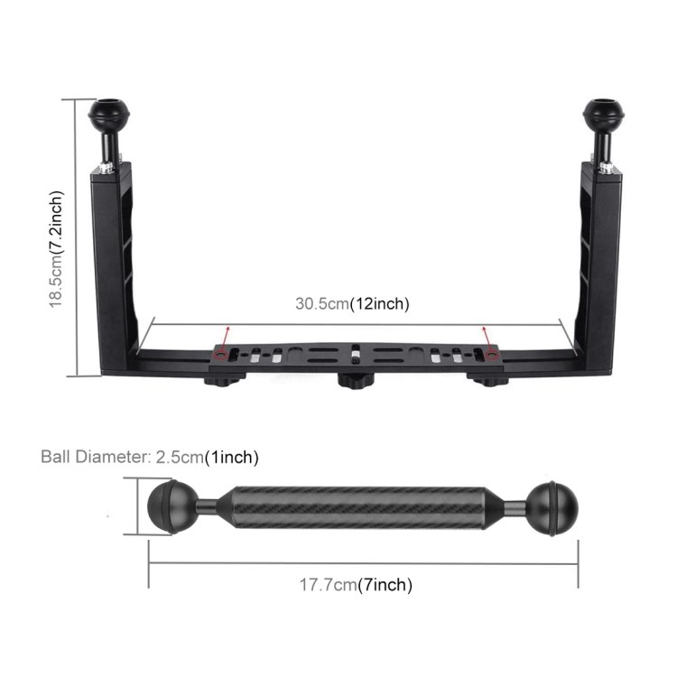 3. It is a sturdy platform for mounting underwater video/strobe lights by attaching arms to 1 inch ball mounts.