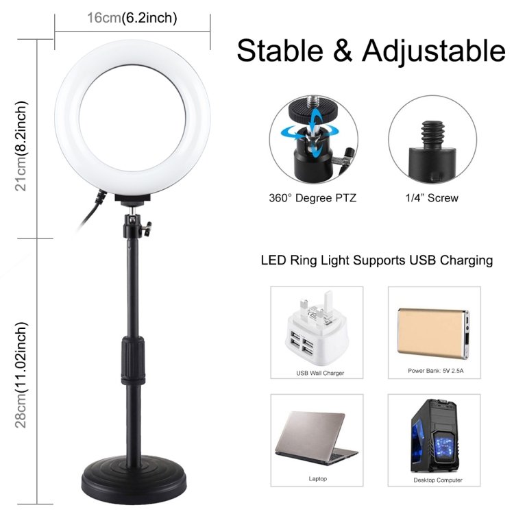 5. The USB ports can be used with multiple devices, such as connect computer host, laptop, mobile power and USB charger. You will be able to enjoy LED ring light at any time free.