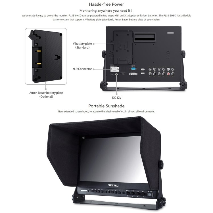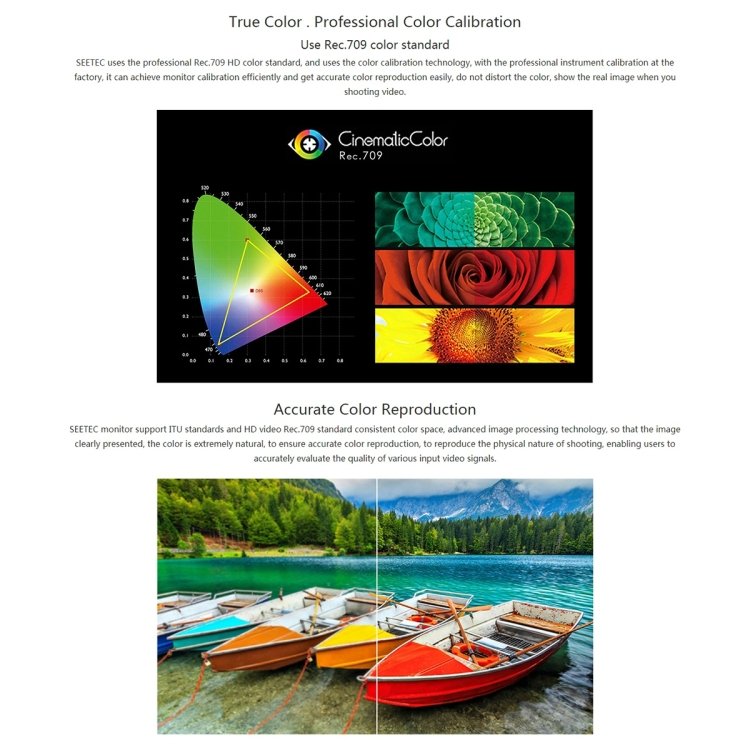 8. The built-in rich functions are very suitable for high-end broadcast monitoring work, such as auxiliary focus, monochrome display, camera mode, center mark, frame mark, image freeze, image flip, image display ratio switching, color temperature adjustment, etc. , Which can help photographers better focus and frame, and get clearer high-quality images faster