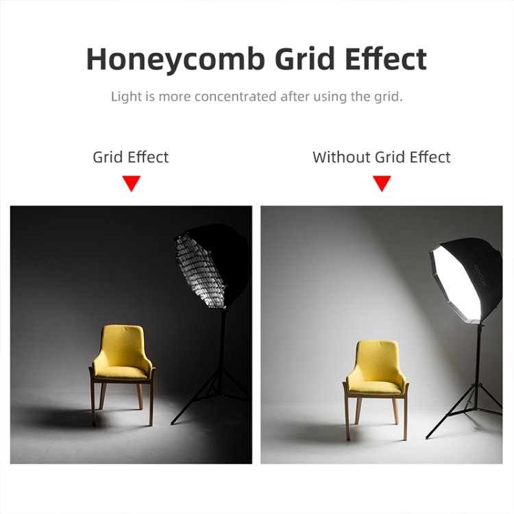 4. Grid is used on a softbox to control light spill and tighten the total coverage area.