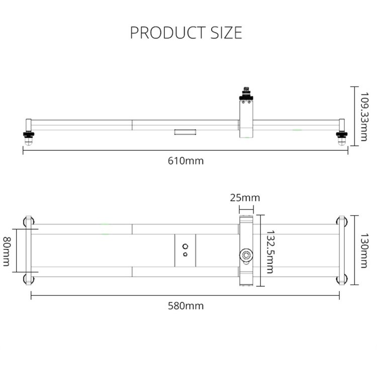 3. The product slide rail pipeline is composed of three parts spliced, detachable, the length of the slide rail can be selected independently, and the effective stroke is 62cm. Easy to carry and easy to assemble 4. The product is equipped with an adapter screw, which can be adapted to a camera cart and can be connected to other camera equipment